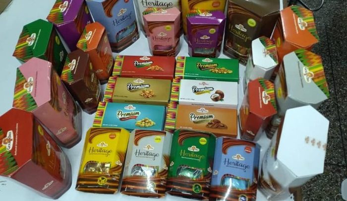 - Tablettes de chocolat : Kingsbite (chocolat au lait classique), Oranco (chocolat au lait à l’orange), Akuafo Bar (chocolat au lait avec une teneur en cacao plus élevée), Coffeechoc (chocolat au café), Tetteh Quarshie (chocolat noir).